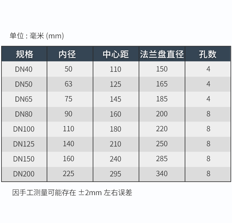 | Specifications: | Size(dimensions): | DN15-20-25-32-40-50-65-80-100-125-150-200-250-300-350-400 | ||
